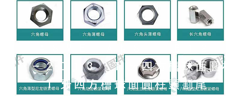 1、Flat:平頭 (鎖入后,頂部與工作件齊平)2、Oval:色拉頭、O頭、半沉頭 3、Round:圓頭 4、Pan:圓扁頭 5、Truss:大圓扁頭 6、Hex:六角頭 A-5:Finish Code/外觀處理。公制自攻螺絲 :于品名后方直接標示 Tapp 主要分類包括普通螺絲、機螺絲、自攻螺絲和膨脹螺絲三種。 有頭螺釘Cap screw 過去限于全牙的扣件。 六角頭螺釘Hex cap screw與大六角螺栓Hex bolt 顧名思義為頭部為六角型的外螺紋扣件,設計為使用扳手轉動。依照ASME B18.2.1標準,六