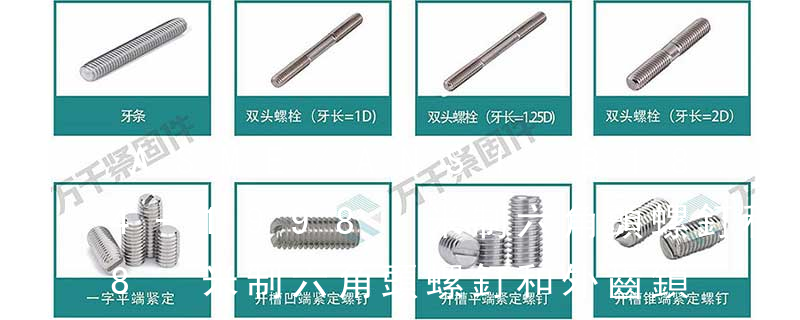 1.8.4 非合金螺母的機械性能1.8.5 有效力矩型鋼六角鎖緊螺母1.8.6 蝶形螺母的機械性能1.8.7 緊定螺釘1.8.8 不銹鋼緊定螺釘1.8.9 自攻螺釘1.8.10 自擠螺釘1.8.11 自鉆自攻螺釘1.8.12 墻板自攻螺釘的機械性能1.8.13 吊環螺釘的