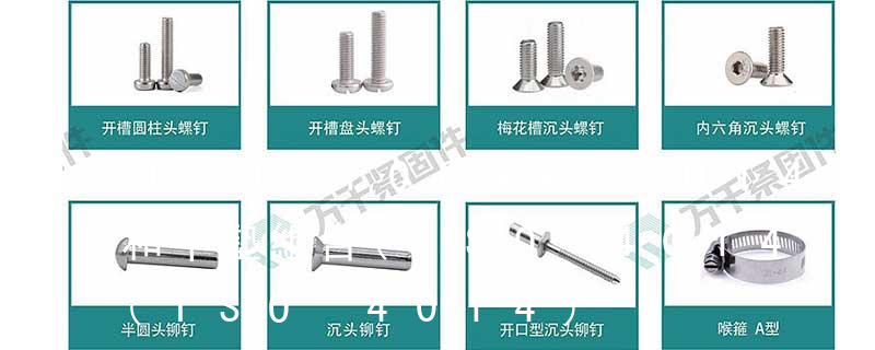 螺栓類:外六角螺栓、外六角法蘭面螺栓、內六角圓柱頭螺栓、吊環螺栓、膨脹螺栓、沉頭內六角螺栓、盤頭內六角螺絲、馬車螺栓、雙頭螺栓、蝶型螺絲、活節螺栓、地腳螺 栓、U型螺栓、四角螺栓等 螺帽類:鉚螺母、吊環螺母、