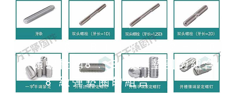 名稱: 1.機螺釘 2.自攻螺釘 3.鉆尾螺釘 4.墻板釘 5.纖維板釘 6.木螺釘7.六角木螺釘 8.不脫出螺釘 9.組合螺釘 10.微型螺釘 11.家具螺釘 12.電子螺釘 頭型: 1.六角頭(hexagon head) 2.六角頭法蘭面(hexagon head with fla